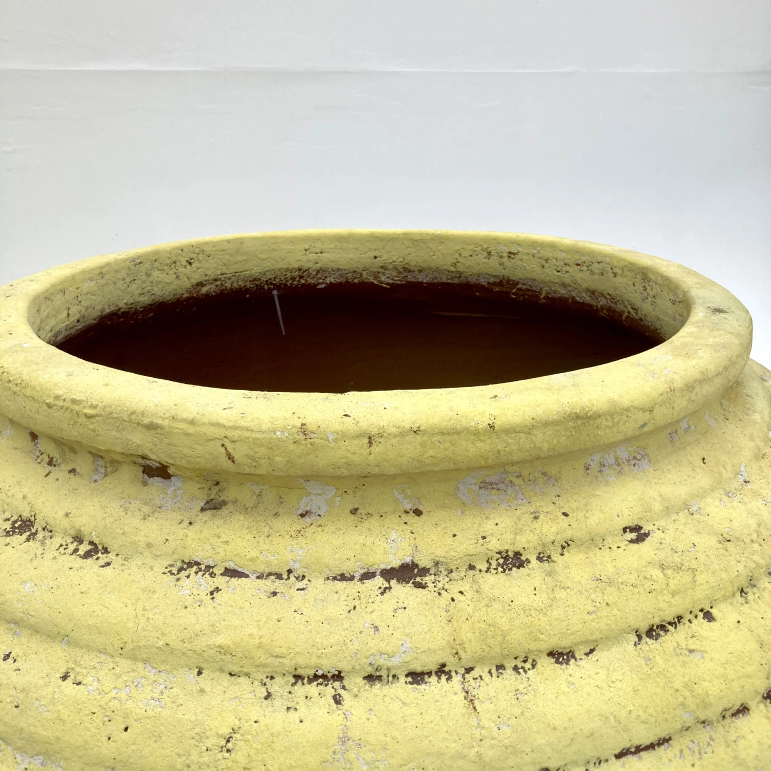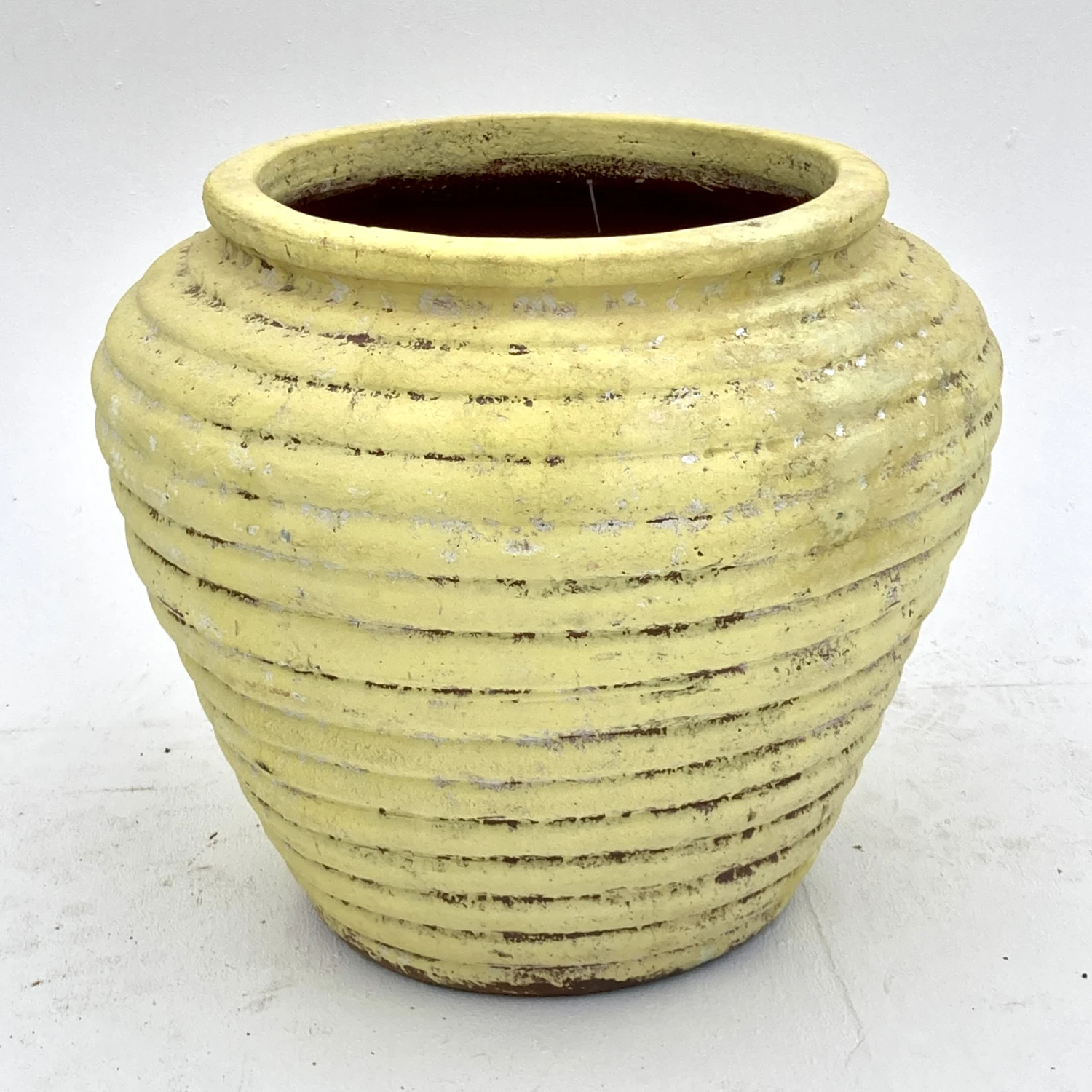 Make a bold statement with this magnificent Ali Baba outdoor pot, named after the infamous Arabic folklore character. With a classic urn shape, and bold horizontal ridges, it is finished with an antique, yellow glaze to really make it stand out in any setting.
