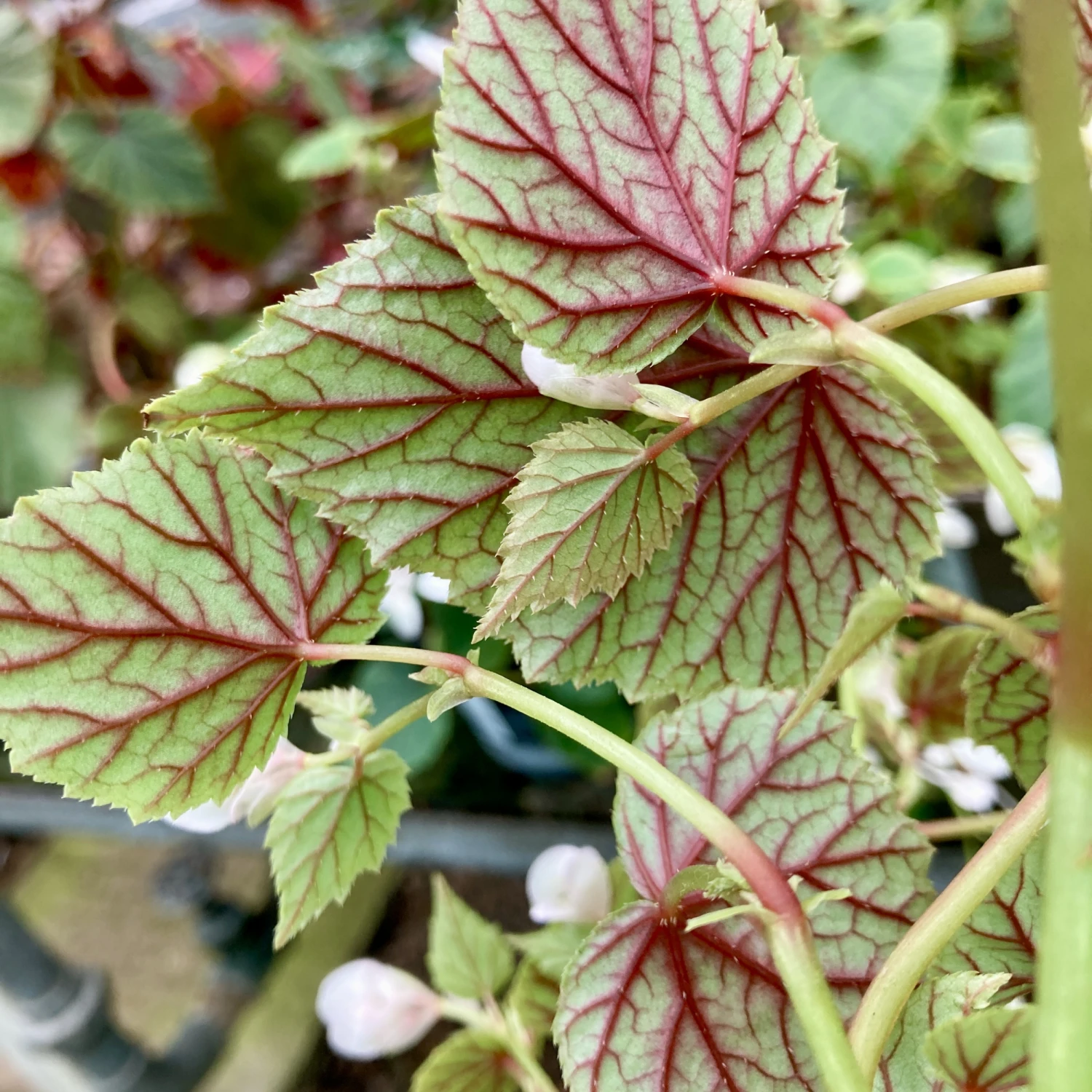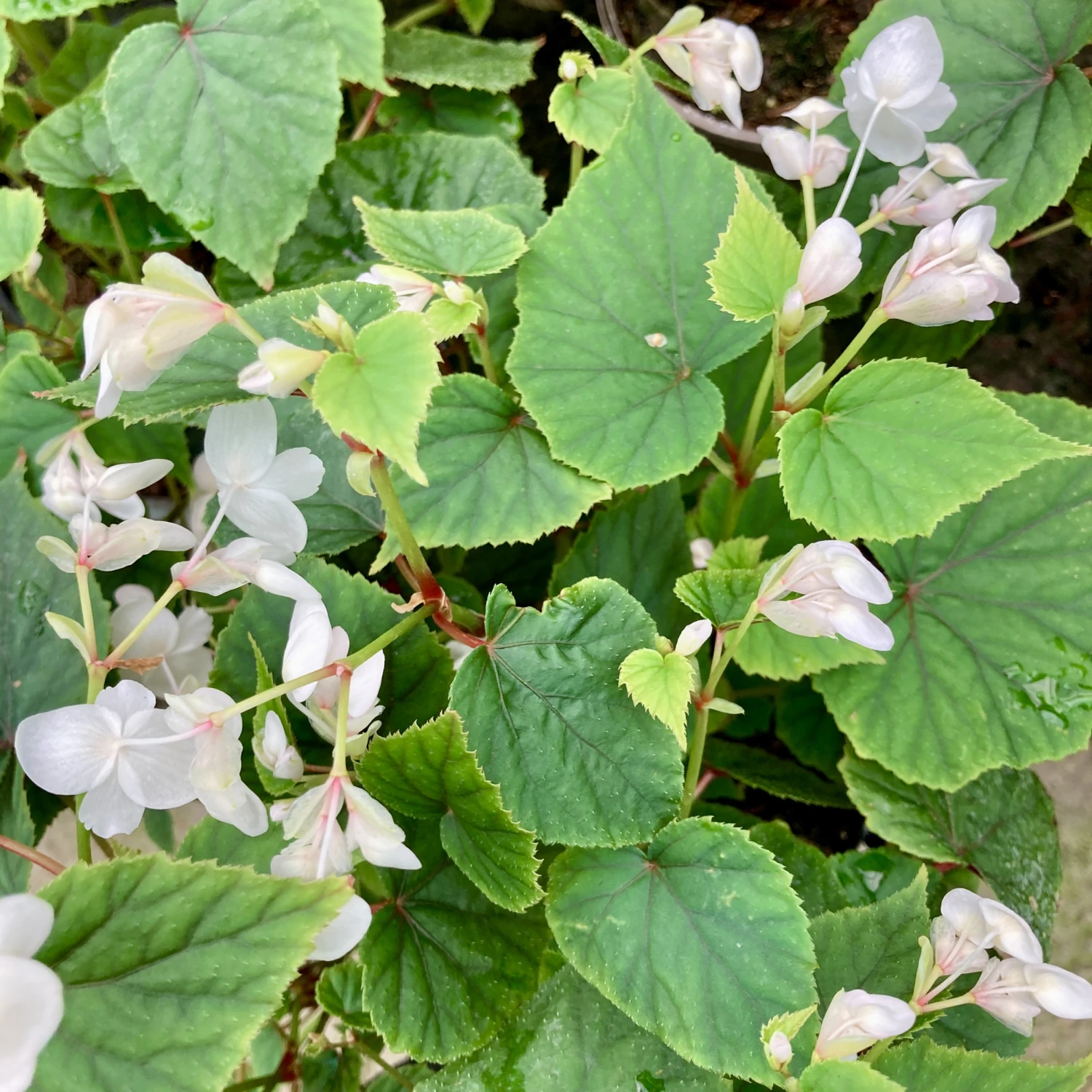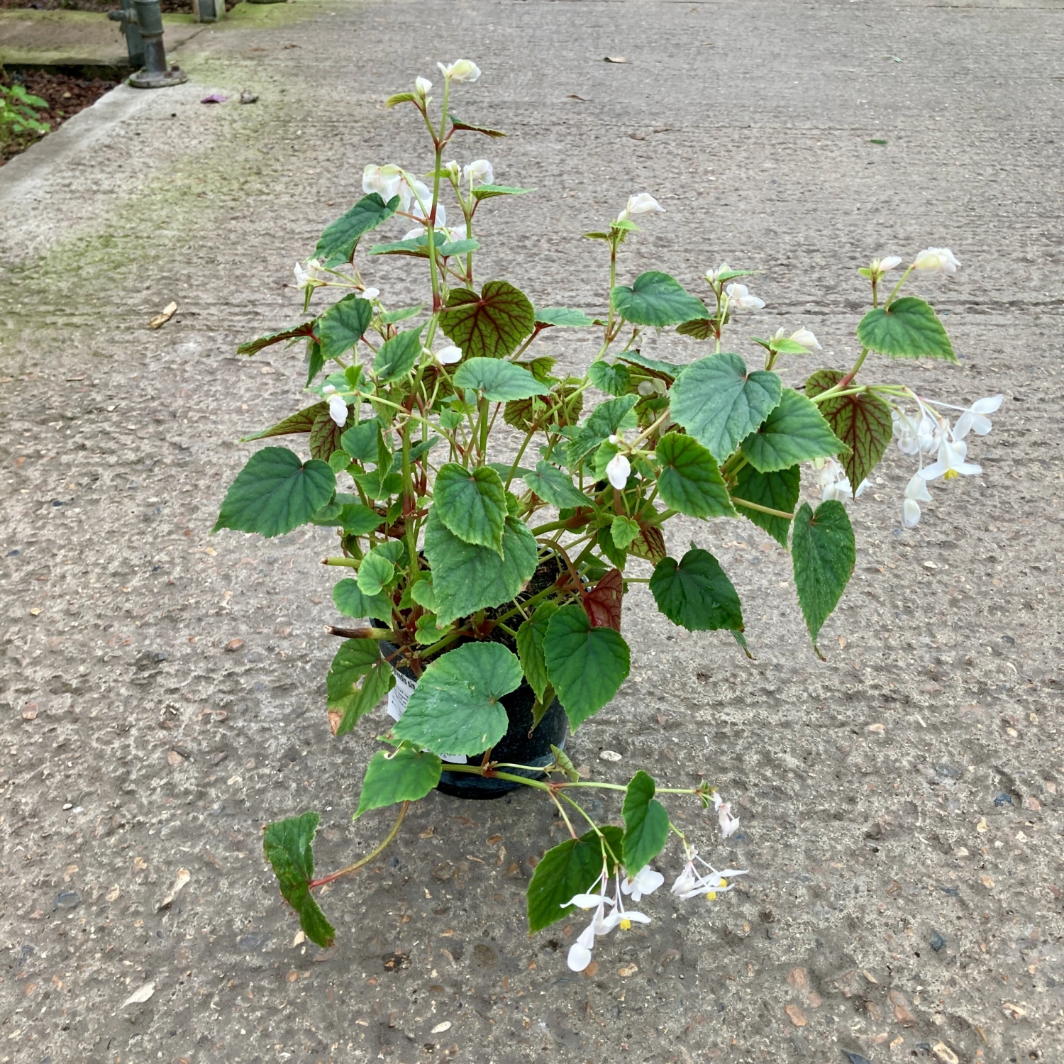 Begonia grandis subsp. sinensis ‘Snowpop’ is a stunning shade-loving, herbaceous perennial, perfect for adding elegance to shady gardens or containers. Featuring delicate white flowers that bloom from late summer to early autumn, this hardy begonia thrives in cooler temperatures. Its attractive, heart-shaped green leaves with striking red veining underneath provide year-round interest, turning a vibrant red in the autumn.