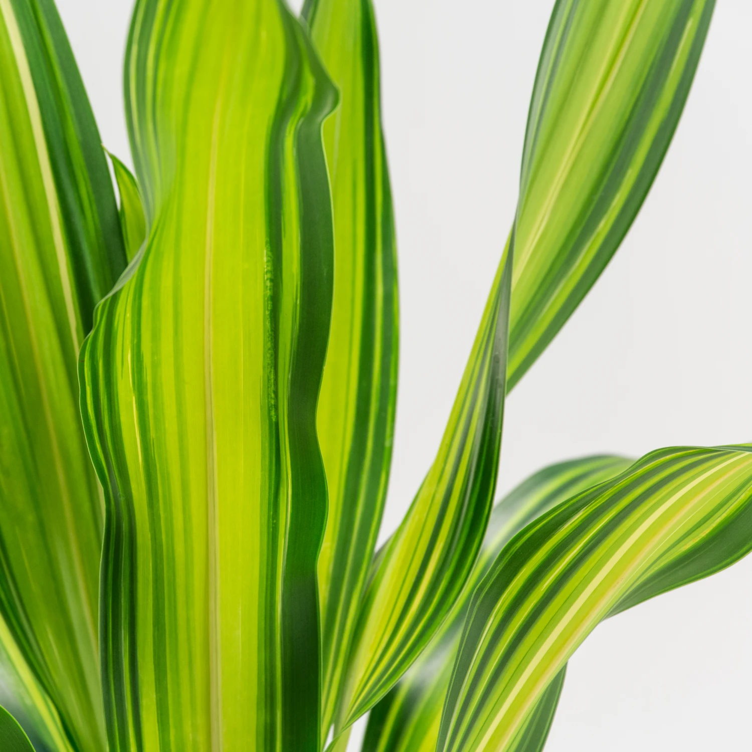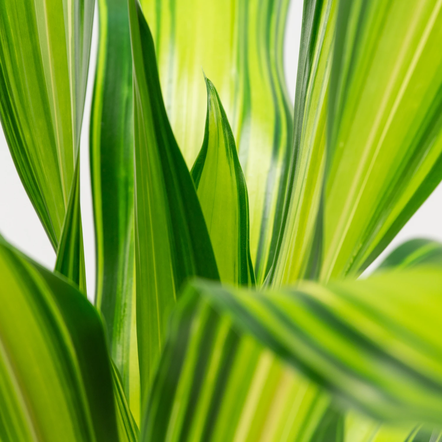 Dracaena ‘Charley’ is a striking, low-maintenance houseplant known for its vibrant, narrow leaves that display a mix of deep green and yellow-green stripes. With a compact, upright growth habit, it typically reaches about 80-150cm in height, making it ideal for small spaces.