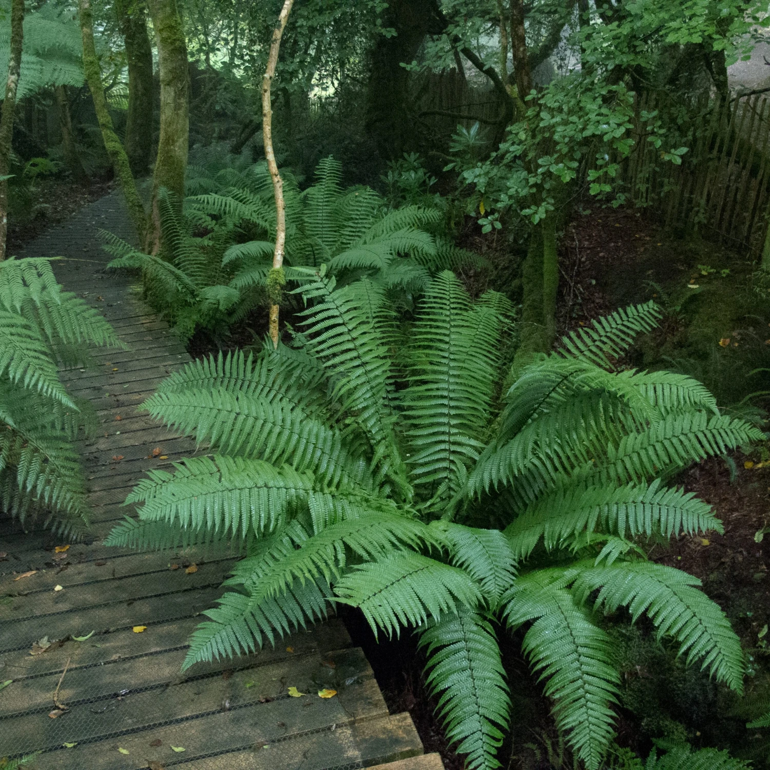The emerging fiddleheads are covered in fine red hair like scales, appearing gold-green as they unfurl and maturing to a dark-green once it’s established. Up close this fern also proves to be mesmerising, with the dark brown to black rachis (stem) contrasting with the finely dissected green pinnae.