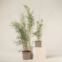 One of the more robust Fargesia bamboos, known as the Umbrella Bamboo, it features glossy dark green foliage and light green culms. New shoots appear rusty red when they emerge in early spring, slowly fading to a lighter hue, which gives the culms a particularly attractive appearance through spring and early summer.