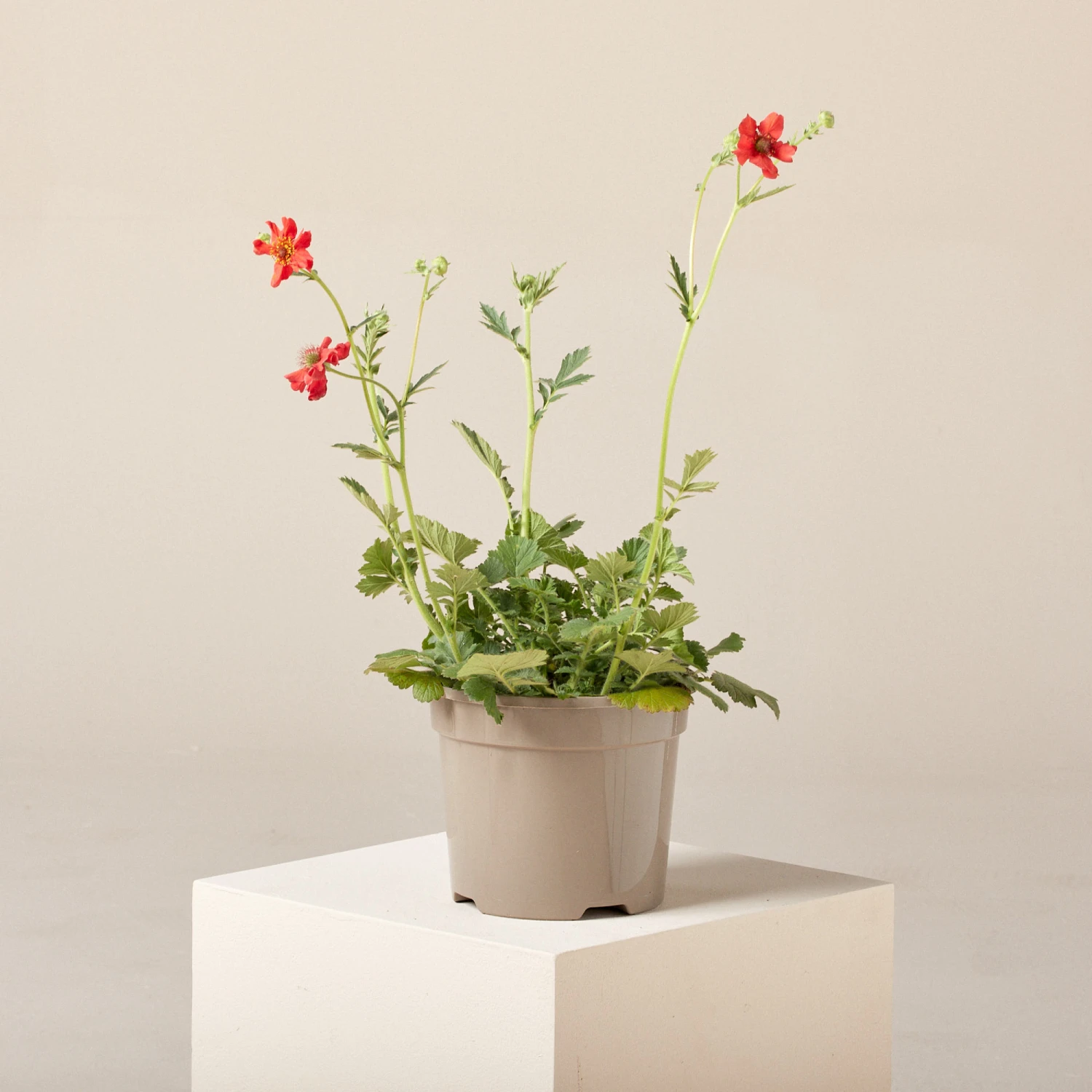 This plant thrives in well-drained soil and full sun but also tolerates partial shade. ‘Mrs Bradshaw’ features dark green, deeply lobed leaves that beautifully contrast with its vivid blooms. Ideal for adding long-lasting colour and visual appeal, Geum chiloense ‘Mrs Bradshaw’ is a must-have for any vibrant garden.
