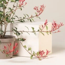 Probably the most popular hedging plant of the last 20 years, Photinia x fraseri is a large hybrid Photinia of P. glabra and P. serrulata. This robust evergreen shrub has delightful red young foliage and heads of long lasting creamy flowers in late spring. Perfectly hardy for most UK gardens, often looking best in sunnier spots.