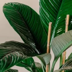 Forget everything you thought you knew about Peace Lilies! This cultivar is a stunning, dramatic introduction, selected for its huge rippled leaves and large white flowers.