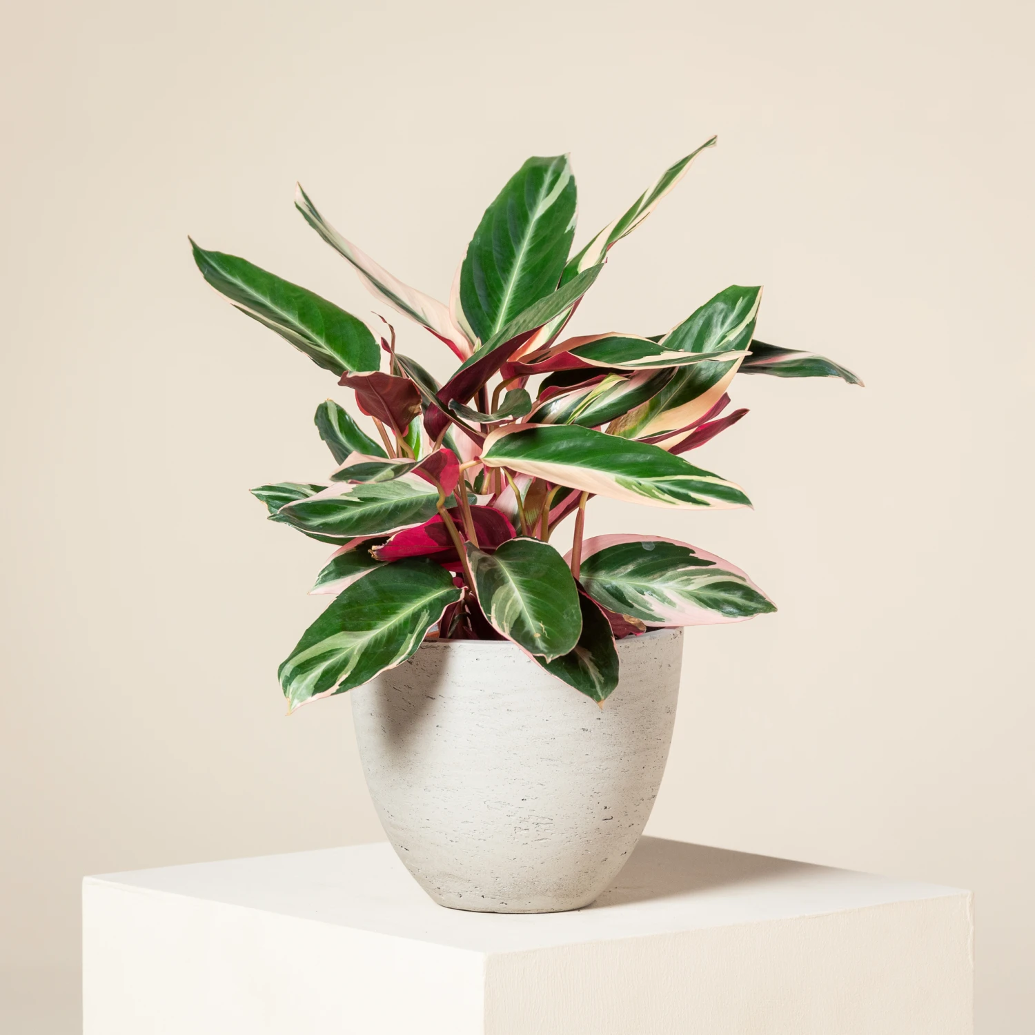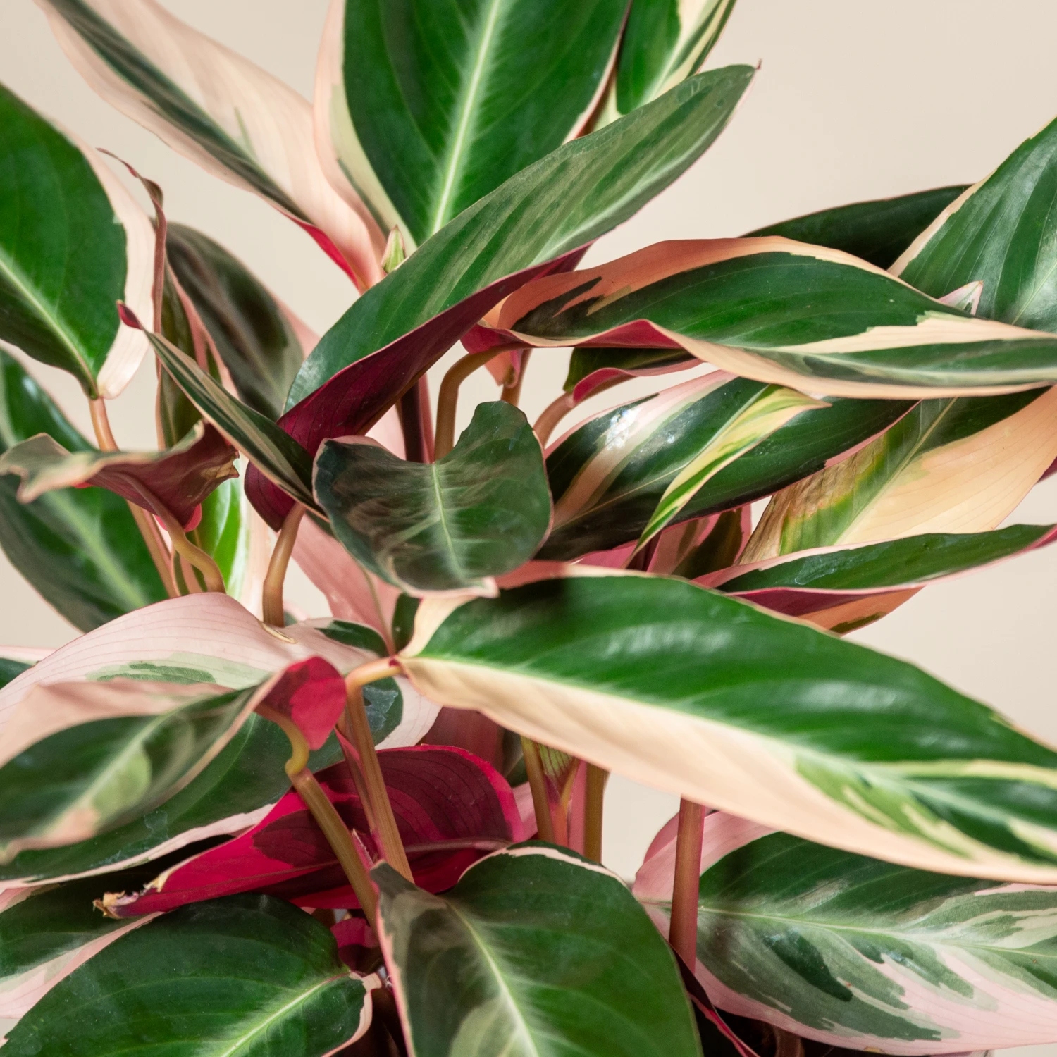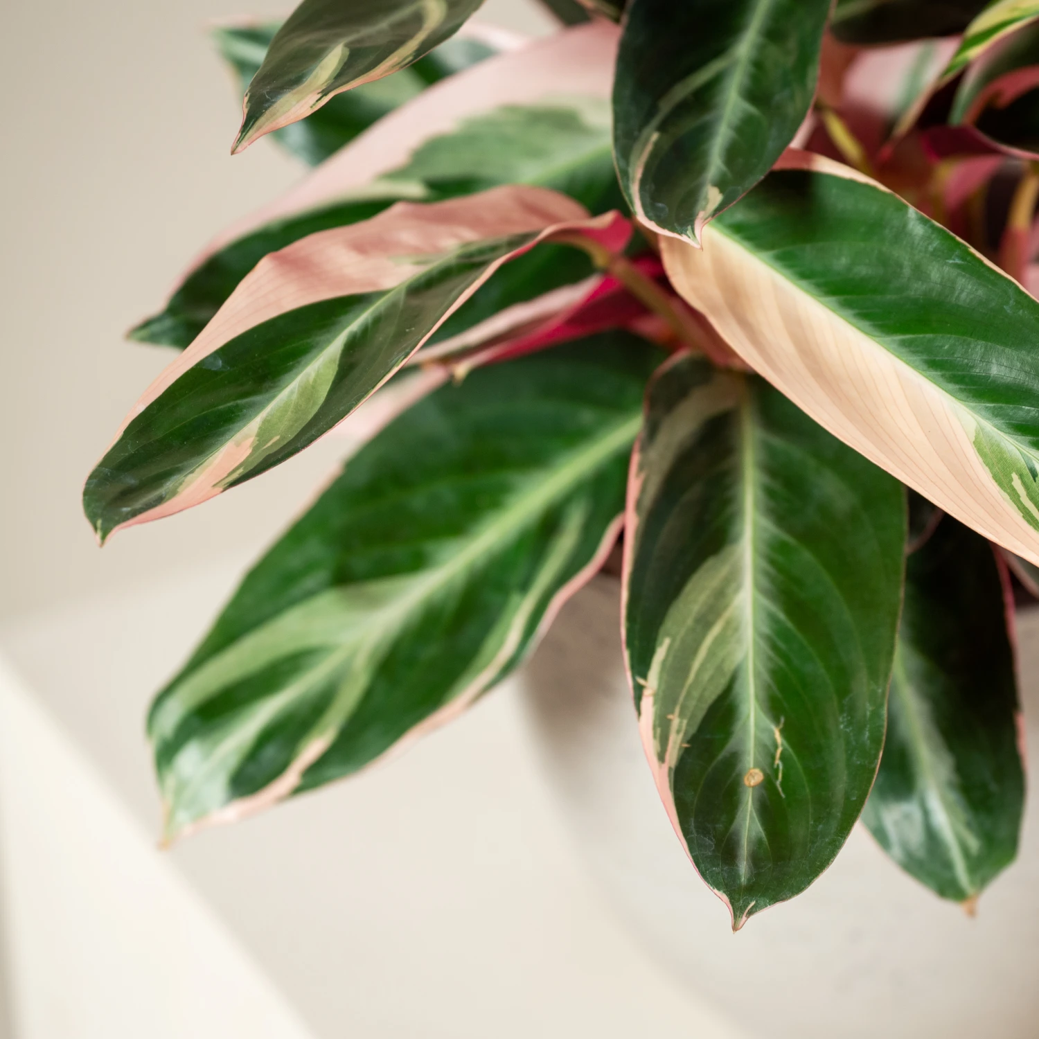The nature of its unique foliage, having gorgeous yet elegant, green, pink and white elongated oblong leaves, make Stromanthe sanguinea ‘Triostar’ perfect as a statement house plant that provides an abundance of interest without taking over the space it’s in.