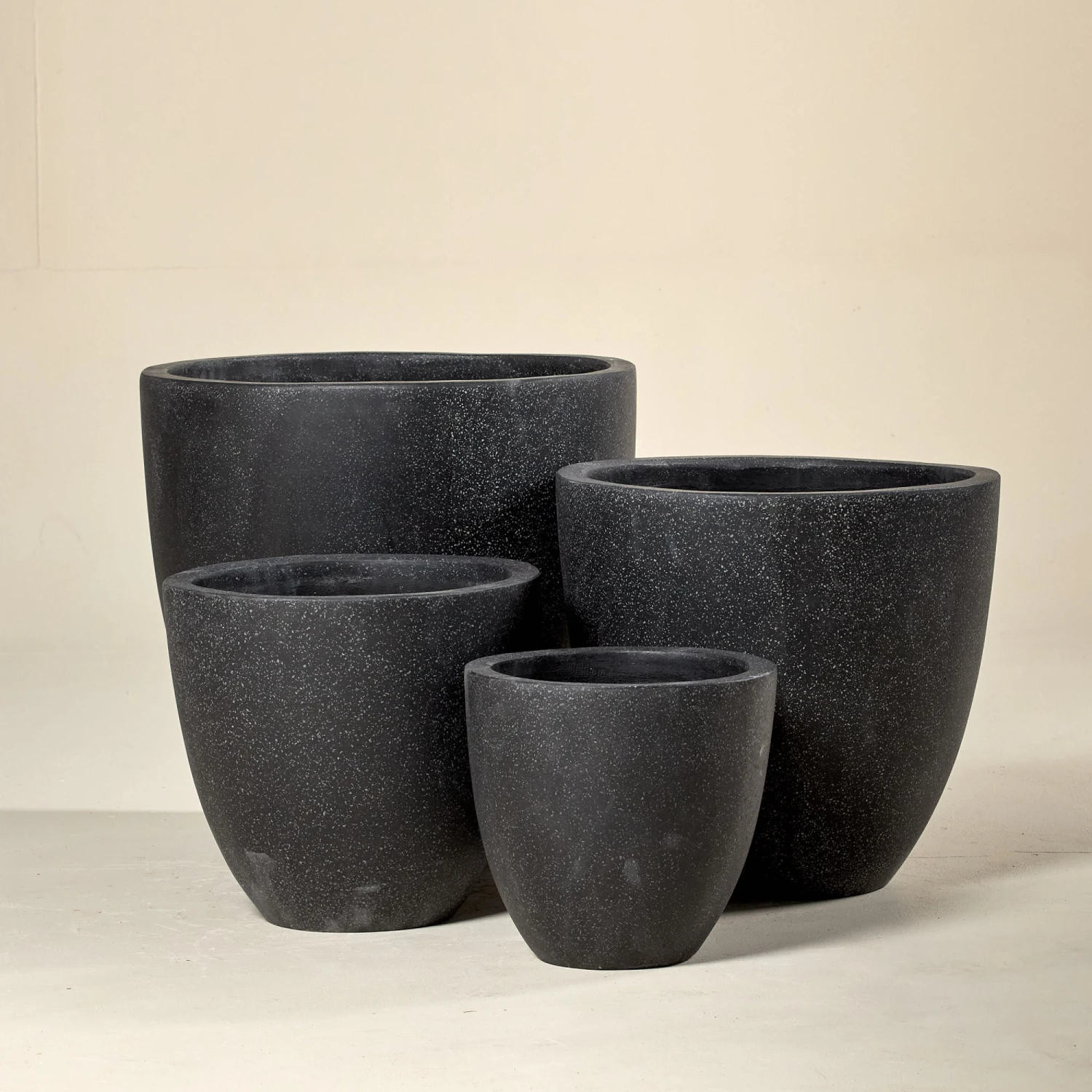 Classic and elegant, these Terrazzo egg pots will enhance any outdoor space with their marble-like texture. Use them for standalone specimen plants, or in a group. Terrazzo is a synthetic material that works well in both traditional and modern garden design.