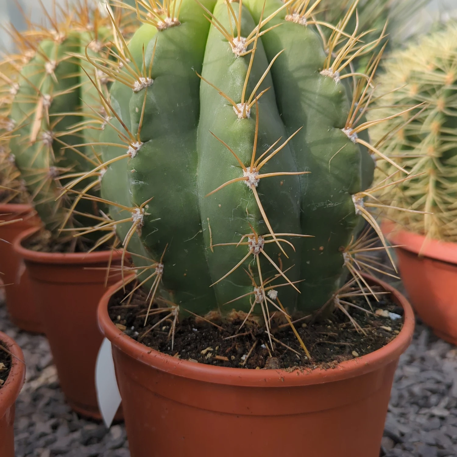 This giant cactus is possibly the hardiest of the columnar growing cacti and, in milder areas, the most improbable plant species you could encounter growing in the open garden in the UK. It is, by cactus standards, relatively cold and moisture tolerant and, once established, can grow quite quickly with up to 20cm of stem height added annually.